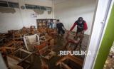 REPUBLIKA.CO.ID, CIREBON -- Sejumlah santriwati Ponpes Al Khairiyah memindahkan barang pascabanjir di Kabupaten Cirebon, Jawa Barat, Sabtu (18/1/2025).