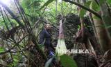 Pemandu menunjukkan bunga bangkai (Amorphophallus Titanum) yang tumbuh di Desa Batu Katak, Bahorok, Langkat, Sumatera Utara, Sabtu (18/1/2025). Bunga bangkai setinggi 160 cm tersebut diperkirakan akan mekar dalam empat hari ke depan dan menjadi daya tarik wisatawan saat berkunjung di Desa Batu Katak. (FOTO : ANTARA FOTO/Fransisco Carolio)