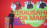 Wakil Menteri BUMN Aminuddin Maruf memberikan sambutan dalam acara malam penghargaan kompetisi Wirausaha Muda Mandiri (WMM) 2024 di Jakarta, Jumat (17/1/2025). Gelaran tahunan ini adalah bentuk dukungan Bank Mandiri dalam mengembangkan minat dan kreatifitas wirausaha serta mendorong pertumbuhan Usaha Kecil dan Menengah (UKM) di Indonesia. Berbeda dari sebelumnya, WMM edisi ke-17 yang menghasilkan 20 finalis dari ribuan peserta ini menghadirkan sesi business matchmaking yang mempertemukan 15 investor potensial dengan 20 top finalis dari empat kategori, yakni fesyen, tech enable startup, beauty & wellness serta Innovative F&B. (FOTO : Republika/Prayogi)