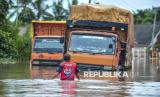 REPUBLIKA.CO.ID, JAMBI -- Pengemudi berjalan di tengah banjir yang merendam Jalan Lintas Sumatera, Merlung, Tanjung Jabung Barat, Jambi, Senin (20/1/2025).