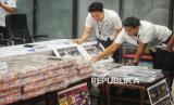 REPUBLIKA.CO.ID, JAKARTA -- Petugas menata barang bukti yang ditampilkan saat konferensi pers kasus judi online di Gedung Bareskrim Mebes Polri, Jakarta, Senin (20/1/2025).