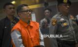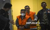 REPUBLIKA.CO.ID, JAKARTA Petugas menggiring Bupati Situbondo Karna Suswandi dan Kepala Bidang Binamarga PUPP Kabupaten Situbondo Eko Prionggo untuk memasuki ruangan konferensi pers di Gedung Merah Putih KPK, Jakarta, Selasa (21/1/2025).