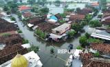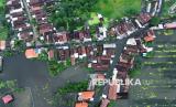 Foto udara suasana banjir merendam Desa Kedungboto, Beji, Pasuruan, Jawa Timur, Rabu (22/1/2025). Menurut data Badan Penanggulangan Bencana Daerah (BPBD) Kabupaten Pasuruan sebanyak 2.350 rumah terendam banjir dan 1.588 kepala keluarga terdampak di lima kecamatan sejak Senin (20/1).  (FOTO : ANTARA FOTO/Umarul Faruq)
