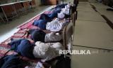 REPUBLIKA.CO.ID, SURABAYA -- Pelajar tidur siang di sela proses belajar di SMP Negeri 39 Surabaya, Jawa Timur, Rabu (22/1/2025).