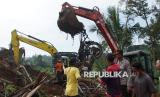 REPUBLIKA.CO.ID, JOMBANG -- Petugas gabungan menggunakan alat berat saat mencari korban longsor di Dusun Jumok, Desa Sambirejo, Kecamatan Wonosalam, Kabupaten Jombang, Jawa Timur, Jumat (24/1/2025).