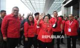 Ketua Umum PDI Perjuangan Megawati Soekarnoputri (tengah) melambaikan tangan ke arah wartawan saat tiba untuk menghadiri Pembekalan dan Bimbingan Teknis kepada Anggota DPRD Provinsi, Kabupaten, dan Kota Fraksi PDI Perjuangan Masa Bakti 2024-2029 di Jakarta, Jumat (24/1/2025). Pembekalan dan bimtek yang dihadiri oleh ribuan kader yang merupakan anggota DPRD dari seluruh Indonesia tersebut bertujuan untuk memperkuat kualitas kepemimpinan seluruh anggota legislatif dari partai dan sebagai arsitek masa depan atas cara pandang ideologi, platform, dan sikap politik partai. Selain itu konsolidasi ini dilaksanakan untuk menghadapi berbagai tantangan dan tekanan politik yang dihadapi partainya. (FOTO : Republika/Prayogi)