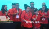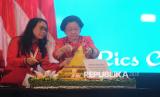 Ketua Umum PDI Perjuangan Megawati Soekarnoputri memotong tumpeng dalam rangka ulang tahunnya pada acara Pembekalan dan Bimbingan Teknis kepada Anggota DPRD Provinsi, Kabupaten, dan Kota Fraksi PDI Perjuangan Masa Bakti 2024-2029 di Jakarta, Jumat (24/1/2025). Pembekalan dan bimtek yang dihadiri oleh ribuan kader yang merupakan anggota DPRD dari seluruh Indonesia tersebut bertujuan untuk memperkuat kualitas kepemimpinan seluruh anggota legislatif dari partai dan sebagai arsitek masa depan atas cara pandang ideologi, platform, dan sikap politik partai. Selain itu konsolidasi ini dilaksanakan untuk menghadapi berbagai tantangan dan tekanan politik yang dihadapi partainya. (FOTO : Republika/Prayogi)