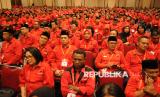 Sejumlah anggota DPRD Provinsi, Kabupaten, dan Kota Fraksi PDI Perjuangan Masa Bakti 2024-2029 mengikuti Pembekalan dan Bimbingan Teknis yang disampaikan oleh Ketum PDI Perjuangan Megawati Soekarnoputri di Jakarta, Jumat (24/1/2025). Pembekalan dan bimtek yang dihadiri oleh ribuan kader yang merupakan anggota DPRD dari seluruh Indonesia tersebut bertujuan untuk memperkuat kualitas kepemimpinan seluruh anggota legislatif dari partai dan sebagai arsitek masa depan atas cara pandang ideologi, platform, dan sikap politik partai. Selain itu konsolidasi ini dilaksanakan untuk menghadapi berbagai tantangan dan tekanan politik yang dihadapi partainya. (FOTO : Republika/Prayogi)