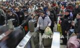 Puncak mudik Tahun Baru Imlek di China terjadi pada Sabtu (25/1). Kementerian Perhubungan China memperkirakan akan ada 510 juta perjalanan kereta api dan 90 juta perjalanan udara selama libur Imlek.