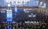 REPUBLIKA.CO.ID, HANGHZHOU -- Wisatawan memadati stasiun kereta api di Hangzhou, provinsi Zhejiang, China, Sabtu (25/1/2025), jelang Tahun Baru Imlek.