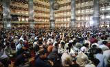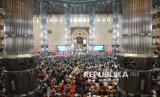 Jamaah mendengarkan ceramah saat Peringatan Isra Miraj di Masjid Istiqlal, Jakarta, Senin (27/1/2025). Peringatan Isra Miraj Nabi Muhammad SAW 1446 H tersebut mengusung tema Membumikan Bahasa Langit: Membincang Kemuliaan Ibadah Sholat. (FOTO : Republika/Prayogi)