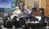 Menteri Agama Nasaruddin Umar (kiri) dan Pendakwah Habib Husen bin Jafar Alhadar (kanan) menjadi narasumer saat Peringatan Isra Miraj di Masjid Istiqlal, Jakarta, Senin (27/1/2025). Peringatan Isra Miraj Nabi Muhammad SAW 1446 H tersebut mengusung tema Membumikan Bahasa Langit: Membincang Kemuliaan Ibadah Sholat. (FOTO : Republika/Prayogi)