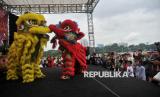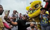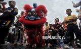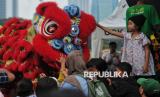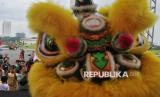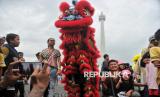 Perayaan imlek di Monas dimeriahkan dengan atraksi barongsai.