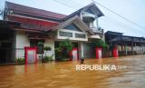 REPUBLIKA.CO.ID, KUDUS -- Warga melintasi jalan yang tergenang banjir di Desa Mejobo, Kudus, Jawa Tengah, Kamis (30/1/2025).