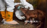 REPUBLIKA.CO.ID, DELI SERDANG -- Petugas Dinas Peternakan Deli Serdang mengambil sampel darah ternak babi yang terindikasi penyakit flu babi atau African Swine Fever (ASF) di Gaperta Ujung, Deli Serdang, Sumatera Utara, Kamis (30/1/2025).