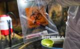 Petugas Dinas Peternakan Deli Serdang menunjukkan sampel darah ternak babi yang terindikasi penyakit flu babi atau African Swine Fever (ASF) di Gaperta Ujung, Deli Serdang, Sumatera Utara, Kamis (30/1/2025). Sampel darah tersebut akan diuji laboratorium guna mengetahui jenis virus dan penyakit hewan itu setelah kasus kematian 70 babi di lokasi tersebut. (FOTO : ANTARA FOTO/Fransisco Carolio)