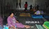 Warga Kampung Sepatan, RT 18/05, Rorotan, Cilincing memanfaatkan kontainer atau peti kemas yang kosong untuk dijadikan tempat mengungsi sementara setelah kediamannya terendam banjir setinggi satu meter.