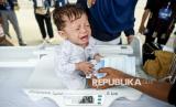 Seorang bocah menangis saat timbang berat badan di sela peringatan Hari Gizi Nasional ke-65 di Samarinda, Kalimantan Timur, Ahad (2/2/2025). Peringatan Hari Gizi Nasional ke-65 bertema Pilih Makanan Bergizi untuk Keluarga Sehat itu juga disediakan pemeriksaan kesehatan gratis, konseling gizi hingga pemberian vitamin A yang bertujuan untuk mewujudkan keluarga sehat, meningkatkan kualitas hidup, membantu Indonesia bebas dari stunting. (FOTO : ANTARA FOTO/M Risyal Hidayat)