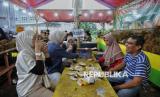 Pembeli menyantap buah durian di lapak dagangan durian Palembang di kawasan Warung Buncit, Jakarta, Ahad (2/1/2025). Durian lokal tersebut didatang dari Palembang saat musim panen untuk di pasarkan di beberapa daerah seperti Jawa, Lampung hingga Jakarta. Harga durian dibanderol mulai dari Rp25 ribu hingga Rp150 ribu tergantung ukuran dan kualitas buah durian. Dalam sehari, Andi (51) pemilik lapak durian, dapat menjual sebanyak 1.000 hingga 1.500 juta perhari dengan omset harian mencapai Rp30 juta. Durian tersebut dipasok langsung dari Palembang, Sumatera Selatan dalam sehari 3 truk. Andi menuturkan, Jakarta menjadi salah satu daerah dengan peminat buah durian yang paling tinggi. (FOTO : Republika/Thoudy Badai)