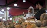 Calon pembeli mencicipi buah durian di lapak dagangan durian Palembang di kawasan Warung Buncit, Jakarta, Ahad (2/1/2025). Durian lokal tersebut didatang dari Palembang saat musim panen untuk di pasarkan di beberapa daerah seperti Jawa, Lampung hingga Jakarta. Harga durian dibanderol mulai dari Rp25 ribu hingga Rp150 ribu tergantung ukuran dan kualitas buah durian. Dalam sehari, Andi (51) pemilik lapak durian, dapat menjual sebanyak 1.000 hingga 1.500 juta perhari dengan omset harian mencapai Rp30 juta. Durian tersebut dipasok langsung dari Palembang, Sumatera Selatan dalam sehari 3 truk. Andi menuturkan, Jakarta menjadi salah satu daerah dengan peminat buah durian yang paling tinggi. (FOTO : Republika/Thoudy Badai)