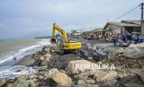 Operator menggunakan alat berat membuat tanggul penahan ombak di samping jalan yang rusak akibat diterjang gelombang tinggi di Lingkungan Bugis, Ampenan, Mataram, NTB, Senin (3/2/2025). Gelombang tinggi dan pasang yang terjadi sejak dua hari lalu tersebut mengakibatkan jalan rusak serta sejumlah rumah warga roboh akibat abrasi pantai. (FOTO : ANTARA FOTO/Ahmad Subaidi)