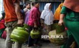 Warga antre untuk membeli gas elpiji 3 kilogram bersubsidi di salah satu pangkalan di Kawasan Bojong Gede, Kab Bogor, Jawa Barat, Selasa (4/2/2025). Sejumlah warga mengeluhkan kebijakan pemerintah yang melarang penjualan elpiji di pengecer/warung karena hal ini  menyulitkan masyarakat. Seorang warga Egi Kusuma (45) yang sudah mengantre sejak pukul 06.00 pagi berharap semoga pasokan/penjualan gas bisa kembali normal sehingga memudahkan masyarakat kecil dan tidak perlu menghabiskan waktu dan tenaga hanya untuk berburu gas. (FOTO : Republika/Prayogi)