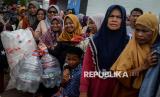 Sejumlah warga mengantre untuk menimbang sampah saat kegiatan Sembako Tukar Sampah di Alun-alun Teluk Naga, Kabupaten Tangerang, Banten, Selasa (4/2/2025). Kegiatan penukaran sampah rumah tangga yang sudah dipisahkan jenisnya dengan sembako tersebut untuk mengedukasi warga pentingnya pengelolaan sampah dalam pengembangan ekonomi sirkular. (FOTO : ANTARA FOTO/Putra M. Akbar)
