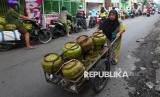 Warga mencari tabung gas elpiji subsidi 3 kilogram di kawasan Palmerah, Jakarta Barat, Selasa (4/2/2025).Salah satu warga menuturkan, kebijakan larangan terkait penjualan gas elpiji subsidi di warung eceran membuat warga kesulitan mencari gas untuk kebutuhannya. Wati (54) mengaku telah mendatangi hampir lima agen penjual tabung gas subsidi di kawasan tersebut dan hasilnya nihil. Ia menuturkan, dampak dari kebijakan tersebut membuat sebagian warga kesulitan untuk menjalankan usaha dan kebutuhan masak sehari-hari. Mengenai hal tersebut, Pemerintah kembali mengizinkan warung pengecer untuk membuka layanan penjualan gas subsidi 3 kilogram yang nantinya akan dijadikan sebagai sub agen. (FOTO : Republika/Thoudy Badai)