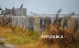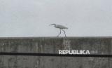 Seekor burung berada di dekat tanggul pengaman laut di Muara Baru, Jakarta, Selasa (4/2/2025). Utusan Presiden Bidang Iklim dan Energi Hashim Djojohadikusumo menyampaikan keputusan Presiden Prabowo Subianto untuk membangun tanggul laut raksasa sepanjang 700 km. Tanggul itu akan memanjang mulai dari Banten sampai Jawa Timur. Proyek pembangunan tanggul laut raksasa diperkirakan memakan waktu antara 10 hingga 20 tahun. (FOTO : Republika/Prayogi)