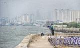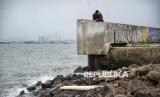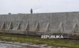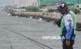 Warga memancing di dekat tanggul pengaman laut di Muara Baru, Jakarta, Selasa (4/2/2025). Utusan Presiden Bidang Iklim dan Energi Hashim Djojohadikusumo menyampaikan keputusan Presiden Prabowo Subianto untuk membangun tanggul laut raksasa sepanjang 700 km. Tanggul itu akan memanjang mulai dari Banten sampai Jawa Timur. Proyek pembangunan tanggul laut raksasa diperkirakan memakan waktu antara 10 hingga 20 tahun. (FOTO : Republika/Prayogi)