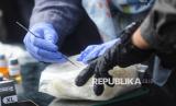 Petugas melakukan uji lab terhadap barang bukti narkotika saat konferensi pers pengungkapan jaringan narkotika dan pemusnahan barang bukti narkotika di Kantor BNN, Jakarta, Jumat (7/2/2025). BNN melakukan pemusnahan barang bukti hasil tindak pidana Narkotika dengan total barang bukti yang dimusnahkan sebanyak 27.108,05 gram sabu dan 3.866 gram Cathinone yang merupakan hasil pengungkapan 4 kasus tindak pidana narkotika dengan jumlah tersangka sebanyak 16 Orang. Dalam kesempatan tersebut BNN juga merilis pengungkapan sejumlah kasus narkotika dengan total barang bukti yang diamankan berupa 49.171,19 gram Sabu, 21.711,62 gram Ganja, 374,48 gram THC, 1.204,02 gram Hasis, 1.055,44 gram dan 113 butir Ekstasi, serta ganja sintesis seberat 53,2 gram. Barang bukti tersebut disita dari pengungkapan 46 Laporan Kasus Narkotika (LKN) dengan jumlah tersangka mencapai 87 orang, 3 diantaranya merupakan Warga Negara Asing (WNA). (FOTO : Republika/Prayogi)