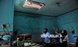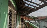 Suasana kontrakan rusak akibat diterjang angin puting beliung di Kampung Buwek, Desa Sumber Jaya, Kecamatan Tambun Selatan, Kabupaten Bekasi, Jawa Barat, Jumat (7/2/2025). Sebanyak 130 rumah di RW 28 Desa Sumber Jay serta satu sekolah SMP Al-Hidayah mengalami kerusakan parah akibat diterjang angin puting beliung pada Kamis (6/2) sekitar pukul 04.00 WIB pagi. Kerusakan tersebut diantaranya asbes dan genteng atap rumah yang tersapu angin serta tembok runtuh. Dalam peristiwa tersebut tidak terdapat korban, namun terdapat kerugian secara material. Warga berharap adanya bantuan dari pemerintah setempat untuk melakukan perbaikan rumah yang terdampak. (FOTO : Republika/Thoudy Badai)