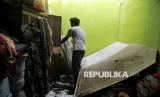 Warga mengambil barang-barang dirumahnya yang rusak akibat diterjang angin puting beliung di Kampung Buwek, Desa Sumber Jaya, Kecamatan Tambun Selatan, Kabupaten Bekasi, Jawa Barat, Jumat (7/2/2025). Sebanyak 130 rumah di RW 28 Desa Sumber Jaya serta satu sekolah SMP Al-Hidayah mengalami kerusakan parah akibat diterjang angin puting beliung pada Kamis (6/2) sekitar pukul 04.00 WIB pagi. Kerusakan tersebut diantaranya asbes dan genteng atap rumah yang tersapu angin serta tembok runtuh. Dalam peristiwa tersebut tidak terdapat korban, namun terdapat kerugian secara material. Warga berharap adanya bantuan dari pemerintah setempat untuk melakukan perbaikan rumah yang terdampak. (FOTO : Republika/Thoudy Badai)