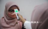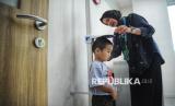 Petugas kesehatan melakukan pemeriksaan terhadap pasien anak di Puskesmas Tebet, Jakarta, Ahad (9/2/2025). Dinas Kesehatan DKI Jakarta menyatakan sebanyak 44 puskesmas siap memberikan program Cek Kesehatan Gratis (CKG) yang resmi akan dimulai secara nasional pada 10 Februari 2025. Guna memastikan kelancaran program ini, Pemprov DKI telah melakukan visitasi serta persiapan fasilitas kesehatan dan tenaga medis. Program ini bertujuan untuk meningkatkan kualitas kesehatan masyarakat Indonesia dan mengurangi beban penyakit yang bisa dicegah. (FOTO : Republika/Prayogi)