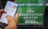 Seorang pasien mengecek aplikasi satu sehat di Puskesmas Tebet, Jakarta, Ahad (9/2/2025). Dinas Kesehatan DKI Jakarta menyatakan sebanyak 44 puskesmas siap memberikan program Cek Kesehatan Gratis (CKG) yang resmi akan dimulai secara nasional pada 10 Februari 2025. Guna memastikan kelancaran program ini, Pemprov DKI telah melakukan visitasi serta persiapan fasilitas kesehatan dan tenaga medis. Program ini bertujuan untuk meningkatkan kualitas kesehatan masyarakat Indonesia dan mengurangi beban penyakit yang bisa dicegah. (FOTO : Republika/Prayogi)