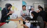 Pj Gubernur Jakarta Teguh Setyabudi berinteraksi dengan pasien saat meninjau Puskesmas Tebet, Jakarta, Ahad (9/2/2025). Dinas Kesehatan DKI Jakarta menyatakan sebanyak 44 puskesmas siap memberikan program Cek Kesehatan Gratis (CKG) yang resmi akan dimulai secara nasional pada 10 Februari 2025. Guna memastikan kelancaran program ini, Pemprov DKI telah melakukan visitasi serta persiapan fasilitas kesehatan dan tenaga medis. Program ini bertujuan untuk meningkatkan kualitas kesehatan masyarakat Indonesia dan mengurangi beban penyakit yang bisa dicegah. (FOTO : Republika/Prayogi)