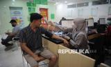 Petugas kesehatan melakukan pemeriksaan terhadap pasien di Puskesmas Tebet, Jakarta, Ahad (9/2/2025). Dinas Kesehatan DKI Jakarta menyatakan sebanyak 44 puskesmas siap memberikan program Cek Kesehatan Gratis (CKG) yang resmi akan dimulai secara nasional pada 10 Februari 2025. Guna memastikan kelancaran program ini, Pemprov DKI telah melakukan visitasi serta persiapan fasilitas kesehatan dan tenaga medis. Program ini bertujuan untuk meningkatkan kualitas kesehatan masyarakat Indonesia dan mengurangi beban penyakit yang bisa dicegah. (FOTO : Republika/Prayogi)