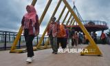 REPUBLIKA.CO.ID, MAGELANG -- Sejumlah wartawan memamerkan busana batik saat peragaan busana di anjungan Menara Langit Merapi kawasan wisata Ketep Pass Sawangan, Magelang, Jawa Tengah, Senin (10/2/2025).