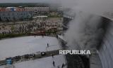 REPUBLIKA.CO.ID, KENDARI -- Pemadam kebakaran menyemprotkan air ke api saat kebakaran di sebuah pusat perbelanjaan di Kendari, Sulawesi Tenggara, Selasa (11/2/2025).
