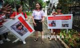Para ibu korban Parental Abduction saat hendak melakukan aduan ke posko (FOTO : Dok. Republika/Gumanti Awaliyah)