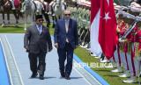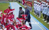 Presiden Prabowo Subianto (kiri) dan Presiden Turki Recep Tayyip Erdogan (kedua kiri) memeriksa pasukan saat kunjungan kenegaraan di Istana Bogor, Bogor, Jawa Barat, Rabu (12/2/2025). Kunjungan kenegaraan Presiden Erdogan ke Indonesia untuk membahas sejumlah kerja sama antara kedua negara. (FOTO : AP Photo/Achmad Ibrahim)