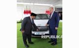 REPUBLIKA.CO.ID, BOGOR -- Presiden Turki Recep Tayyip Erdogan menyerahkan mobil listrik domestik Turki Togg kepada Presiden Indonesia Prabowo Subianto saat kunjungan resminya di Istana Bogor, Bogor, Jawa Barat, Rabu (12/2/2025).