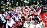 Indonesian students hold a Turkish flag during Turkish President Recep Tayyip Erdogan (FOTO : Adriana Adie/NurPhoto)