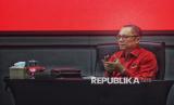 Ketua DPP PDIP Bidang Pemenangan Pemilu Eksekutif Deddy Sitorus saat menghadiri pembekalan kepala daerah terpilih di Sekolah Partai PDI Perjuangan, Lenteng Agung, Jakarta, Rabu (12/2/2025). Pembekalan gelombang pertama yang digelar secara hybrid tersebut diikuti 142 kepala daerah yang baru pertama terpilih di Pilkada 2024. Dengan Pembekalan ini diharapkan kepala daerah dari PDIP tersebut memiliki bekal pengetahuan terkait kondisi geopolitik serta konsep NKRI. Selain itu pembekalan ini sebagai upaya saling mengintegrasikan pemikiran serta menunjukkan bagaimana visi-misi PDIP diturunkan berdasarkan amanat Pancasila dan UUD 45. (FOTO : Republika/Prayogi)