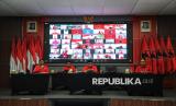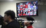 Layar monitor menampilkan para kepala daerah terpilih PDIP yang mengikuti pembekalan di Sekolah Partai PDIP, Lenteng Agung, Jakarta, Rabu (12/2/2025). Pembekalan gelombang pertama yang digelar secara hybrid tersebut diikuti 142 kepala daerah yang baru pertama terpilih di Pilkada 2024. Dengan Pembekalan ini diharapkan kepala daerah dari PDIP tersebut memiliki bekal pengetahuan terkait kondisi geopolitik serta konsep NKRI. Selain itu pembekalan ini sebagai upaya saling mengintegrasikan pemikiran serta menunjukkan bagaimana visi-misi PDIP diturunkan berdasarkan amanat Pancasila dan UUD 45. (FOTO : Republika/Prayogi)