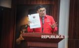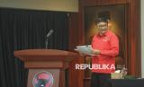 Sekjen PDIP Hasto Kristiyanto menyampaikan paparan saat pembekalan kepala daerah terpilih di Sekolah Partai PDIP, Lenteng Agung, Jakarta, Rabu (12/2/2025). Pembekalan gelombang pertama yang digelar secara hybrid tersebut diikuti 142 kepala daerah yang baru pertama terpilih di Pilkada 2024. Dengan Pembekalan ini diharapkan kepala daerah dari PDIP tersebut memiliki bekal pengetahuan terkait kondisi geopolitik serta konsep NKRI. Selain itu pembekalan ini sebagai upaya saling mengintegrasikan pemikiran serta menunjukkan bagaimana visi-misi PDIP diturunkan berdasarkan amanat Pancasila dan UUD 45. (FOTO : Republika/Prayogi)