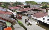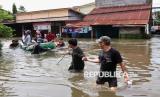 REPUBLIKA.CO.ID, MAKASSAR -- Warga melintasi banjir menggunakan perahu karet di Kelurahan Manggala, Makassar, Sulawesi Selatan, Rabu (12/2/2025).