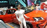 Model berpose di dekat mobil yang dipajang pada pembukaan Indonesia International Motor Show (IIMS) 2025 di JIExpo Kemayoran, Jakarta, Kamis (13/2/2025). Pameran IIMS 2025 diikuti 31 merek mobil dan 25 merek motor dengan menargetkan total transaksi sebesar Rp6,7 triliun. (FOTO : Republika/Edwin Dwi Putranto)