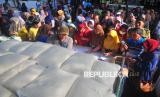 Warga antre membeli beras saat Gerakan Pangan Murah (GPM) di Mejobo, Kudus, Jawa Tengah, Jumat (14/2/2025). Gerakan pangan murah yang digelar Dinas Pertanian dan Pangan setempat bekerja sama dengan Badan Urusan Logistik (BULOG) serta Gabungan Kelompok Tani (Gapoktan) itu menjual berbagai kebutuhan pokok dengan harga lebih murah dari harga pasar yang bertujuan untuk menstabilkan harga bahan pangan yang cenderung mengalami kenaikan menjelang bulan Ramadhan. (FOTO : ANTARA FOTO/Yusuf Nugroho)