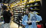 Pengunjung memilah sepatu pada gelaran Jakarta Sneaker Day di Jakarta Convention Center (JCC), Jakarta, Jumat (14/2/2025). Jakarta Sneaker Day kembali digelar di JCC selama tiga hari dari tanggal 14-16 Februari mendatang dengan menghadirkan sebanyak lebih dari 120 brand dan penjual produk sepatu, pakaian hingga parfum dengan menawarkan beragam potongan harga hingga 85 persen. (FOTO : Republika/Thoudy Badai)